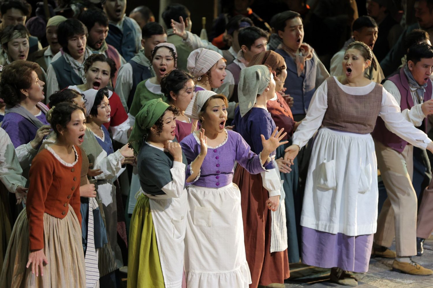 《爱情灵药》于 2021 年 12 月首次在首都上演,是哈萨克斯坦艺术家与欧洲知名大师合作的结晶。法国导演阿尔诺·贝尔纳、舞美设计埃齐奥·弗里杰里奥以及奥斯卡奖得主、服装设计师弗兰卡·斯夸尔恰皮诺共同打造了这部作品,使喜歌剧的轻盈风格与乡村浪漫融为一体,每一幕都仿佛散发着南方明媚的阳光。在导演兼指挥阿兰·布里巴耶夫的带领下,该剧始终呈现出明快、活泼而又深情的艺术风貌。