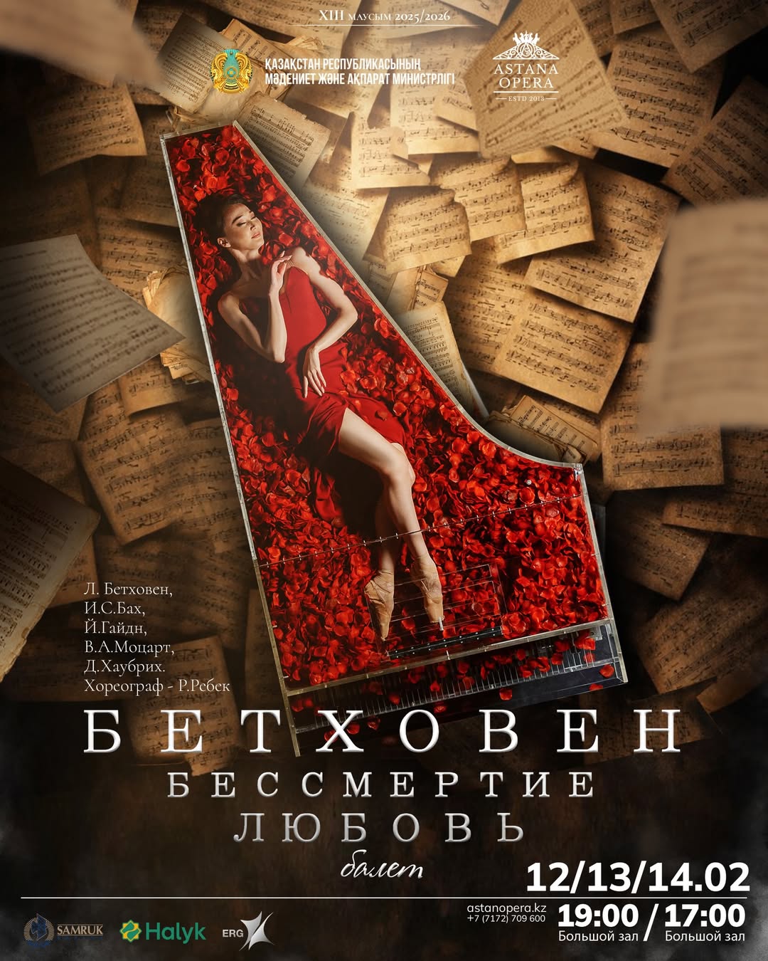 在“阿斯塔纳歌剧院”约会吧! 在“阿斯塔纳歌剧院”约会吧! 表达爱的最好方式就是邀请心爱的人观看芭蕾舞剧《贝多芬——不朽——爱》,音乐由L.贝多芬、J.S.巴赫、J.海顿、W.A.莫扎特和D.豪布里奇演奏。 这部芭蕾舞剧以伟大德国作曲家的生活与命运为基础。舞剧讲述了这位伟大艺术家的悲剧与胜利,他生命中的伙伴是疾病、痛苦、爱与灵感。 📅 2月12、13、14日 📍 “阿斯塔纳歌剧院”大礼堂 为自己献上一场美丽与浪漫的夜晚——你值得拥有 ✨ 🎟 门票现已开售。