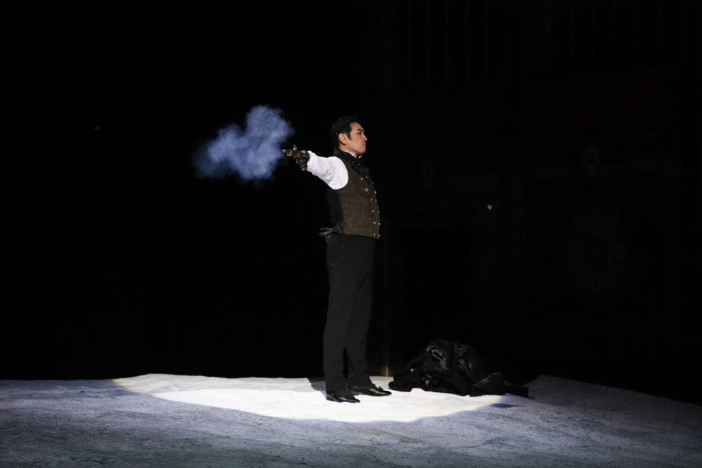 阿斯塔纳歌剧院版《叶甫盖尼·奥涅金》由著名意大利导演达维德·利维莫尔执导。该制作以经历人生沧桑的塔季扬娜的回忆为主线展开,宛如一段记忆的洪流。