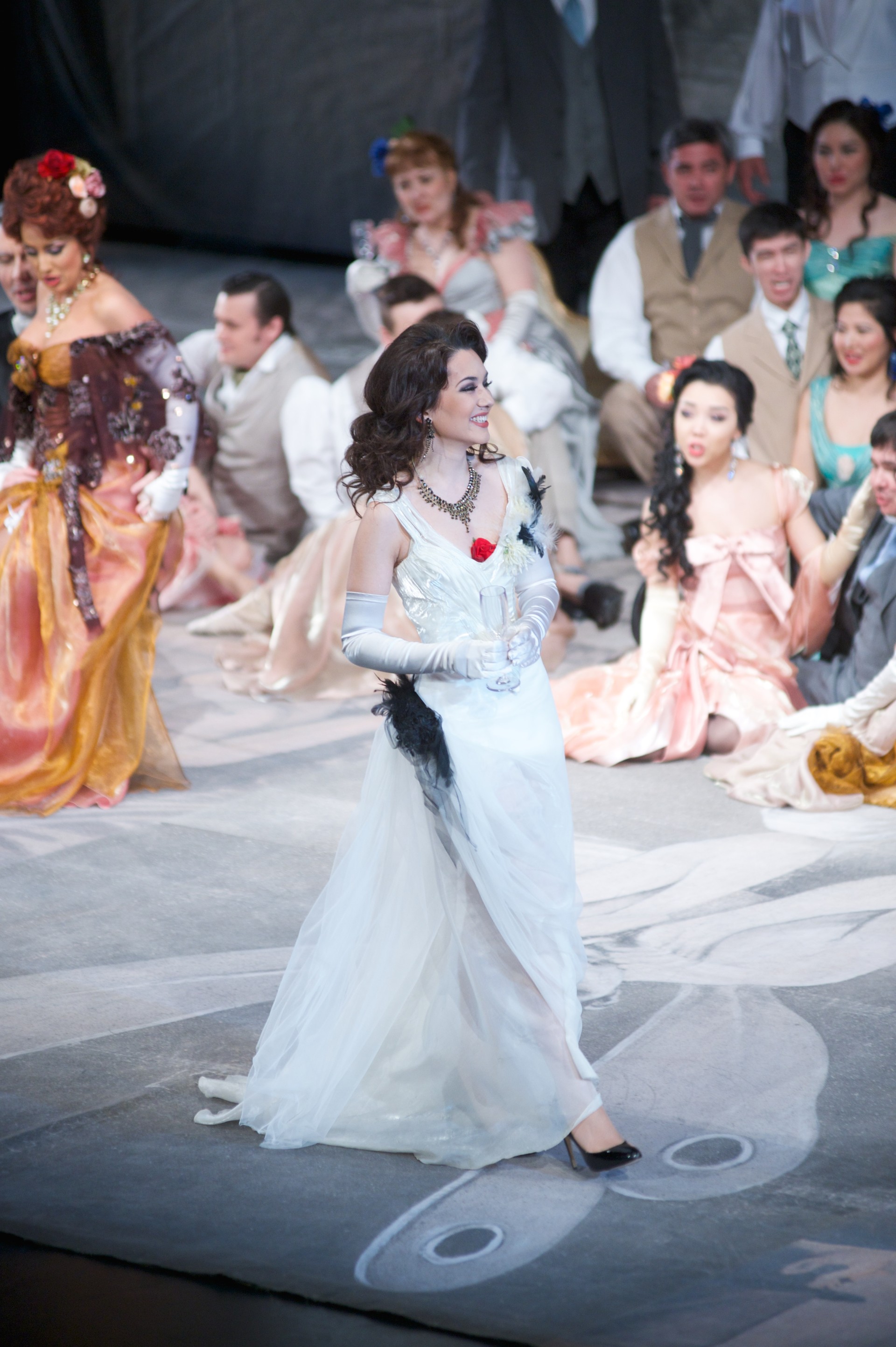 她原本希望在更具象征意义的时刻回归这一角色,但命运对她进行了考验。“我曾梦想在积累了更多新角色之后回归,并希望在生日这一天、在祖国舞台上完成这一象征性的回归。然而不久前,我不得不临时顶替,在博洛尼亚连续演出三场《茶花女》,且没有任何排练。这对我的体力是一次真正的考验——可以说‘破冰’成功了。如今重回祖国哈萨克斯坦的舞台,只有喜悦,再无忧虑。”